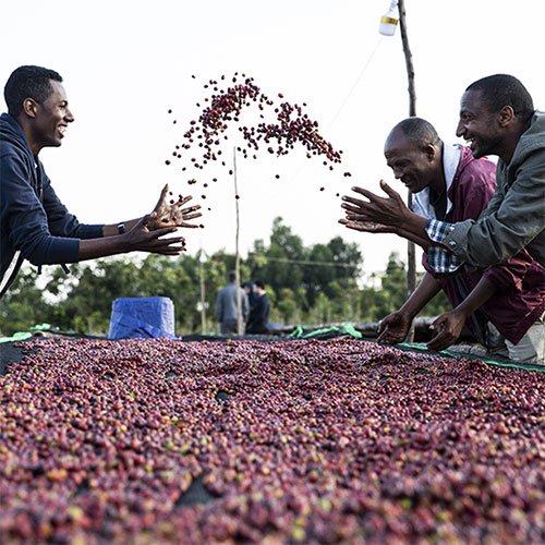 Ciresele de cafea sunt culese manual si uscate la soare pe paturi africane, ridicate la aproape un metru deasupra solului. Ciresele sunt intoarse cu mana, zilnic, pentru asigurarea unei uscari optime si pentru a preveni mucegairea acestora. Ferma dispune de 31 de paturi africane pentru uscarea cafelei, din care 6 sunt rezervate exclusiv pentru procesul natur. In ultimii trei ani, cooperarea cu echipa Belco din Ethiopia a contribuit la imbunatatirea calitatii cafelei, spre satisfactia tuturor.