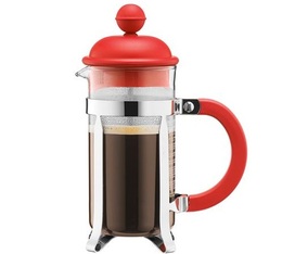 O cafetiera cu piston cu un look retro rosu. Ea face parte din gama color din noua colectie BODUM.